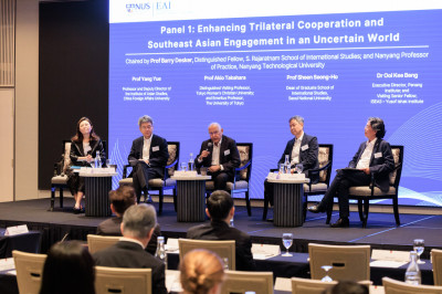 新加坡国立大学东亚研究所星期二(9月23日)举办题为“应对瞬息万变的世界:中国、日本、韩国与东南亚视角“的论坛,汇聚政界、学界和商界人士,就地缘政治、区域一体化、经济合作等课题展开讨论。