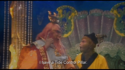 还有我们耳熟能详的名称,也都被翻译成了英文。东海龙王称呼孙悟空为大圣(Great Sage),还引领孙悟空去看定海神针(Tide Control Pillar)。