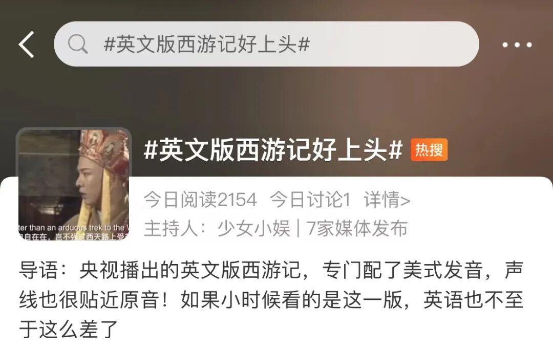 其实,《西游记》英文版于去年就在央视频平台上线,以往只在英语教学圈子里流传,没想到时隔一年成为了各大短视频平台的焦点。